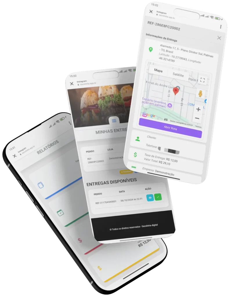 - Aplicativo do entregador com pedidos, detalhes e mapa
