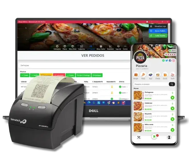 Cardápio digital, comanda online, painel de gestão de pedidos, delivery próprio, entre outros.